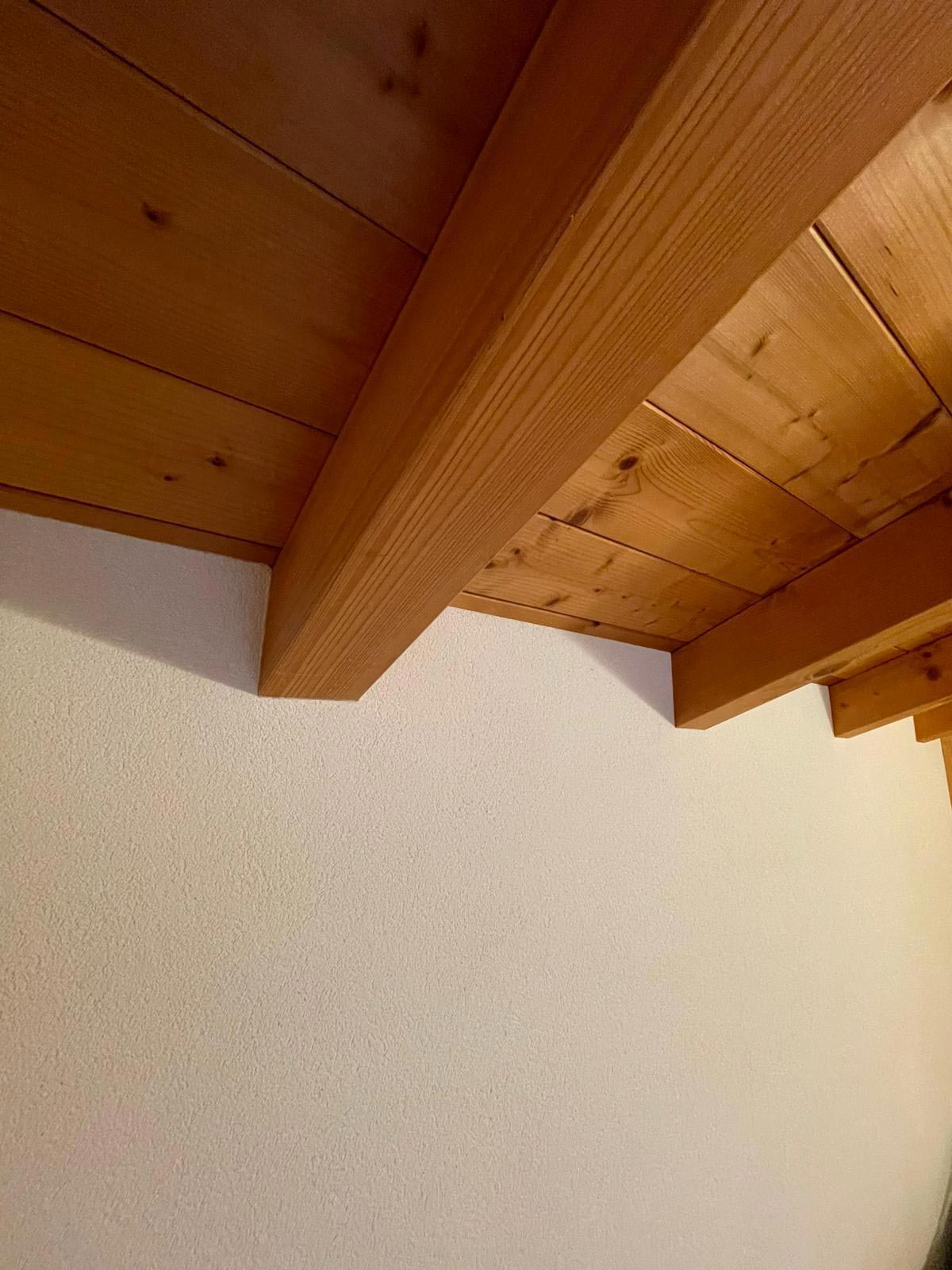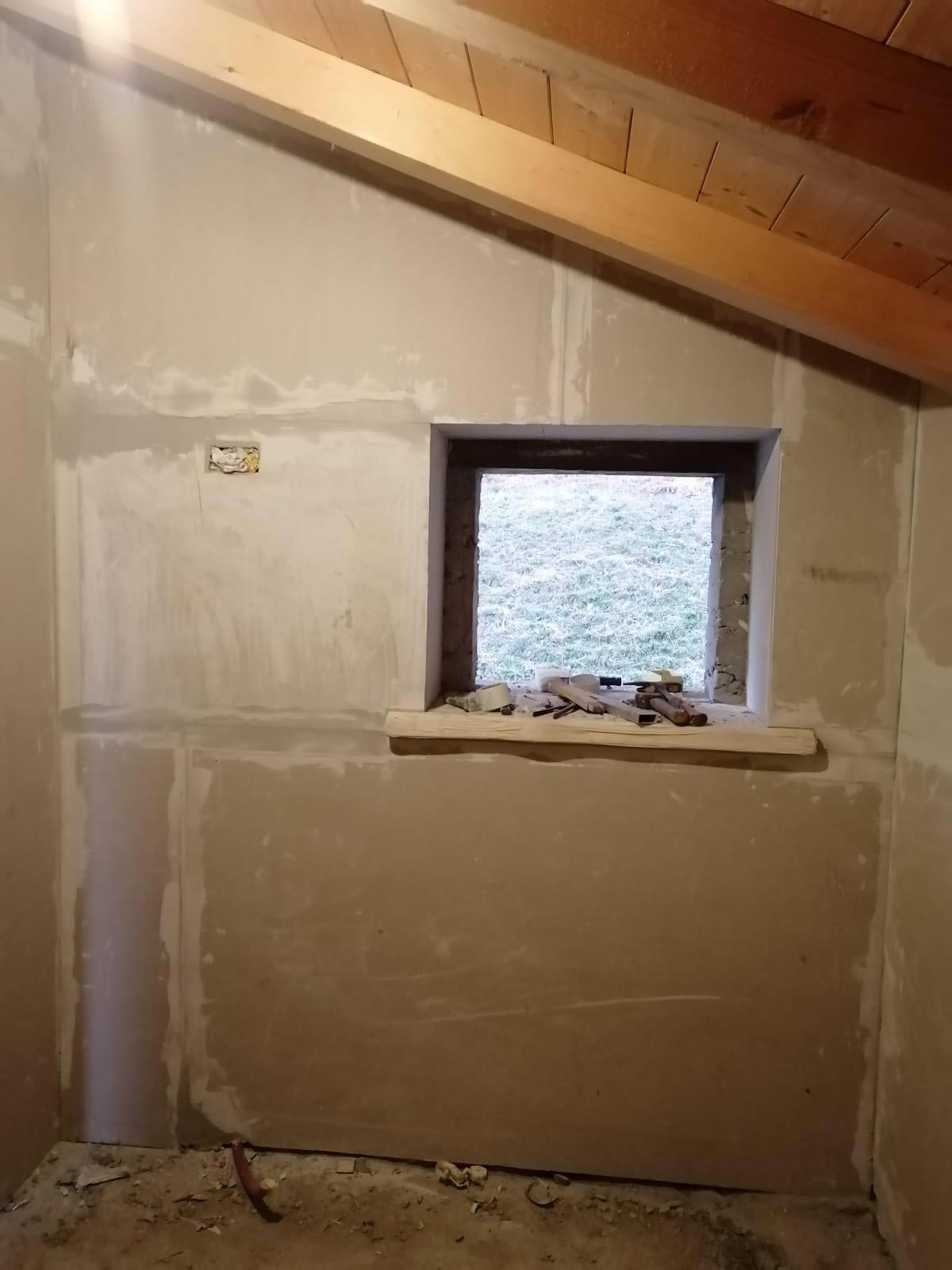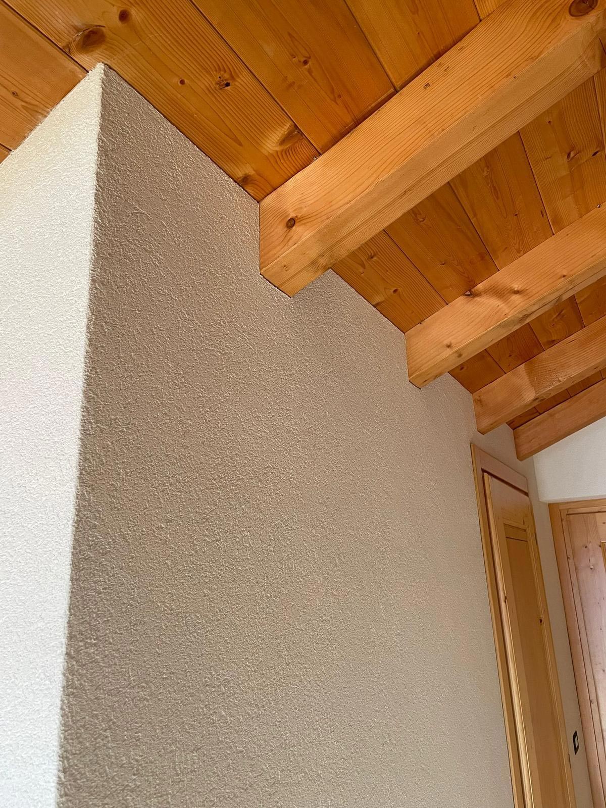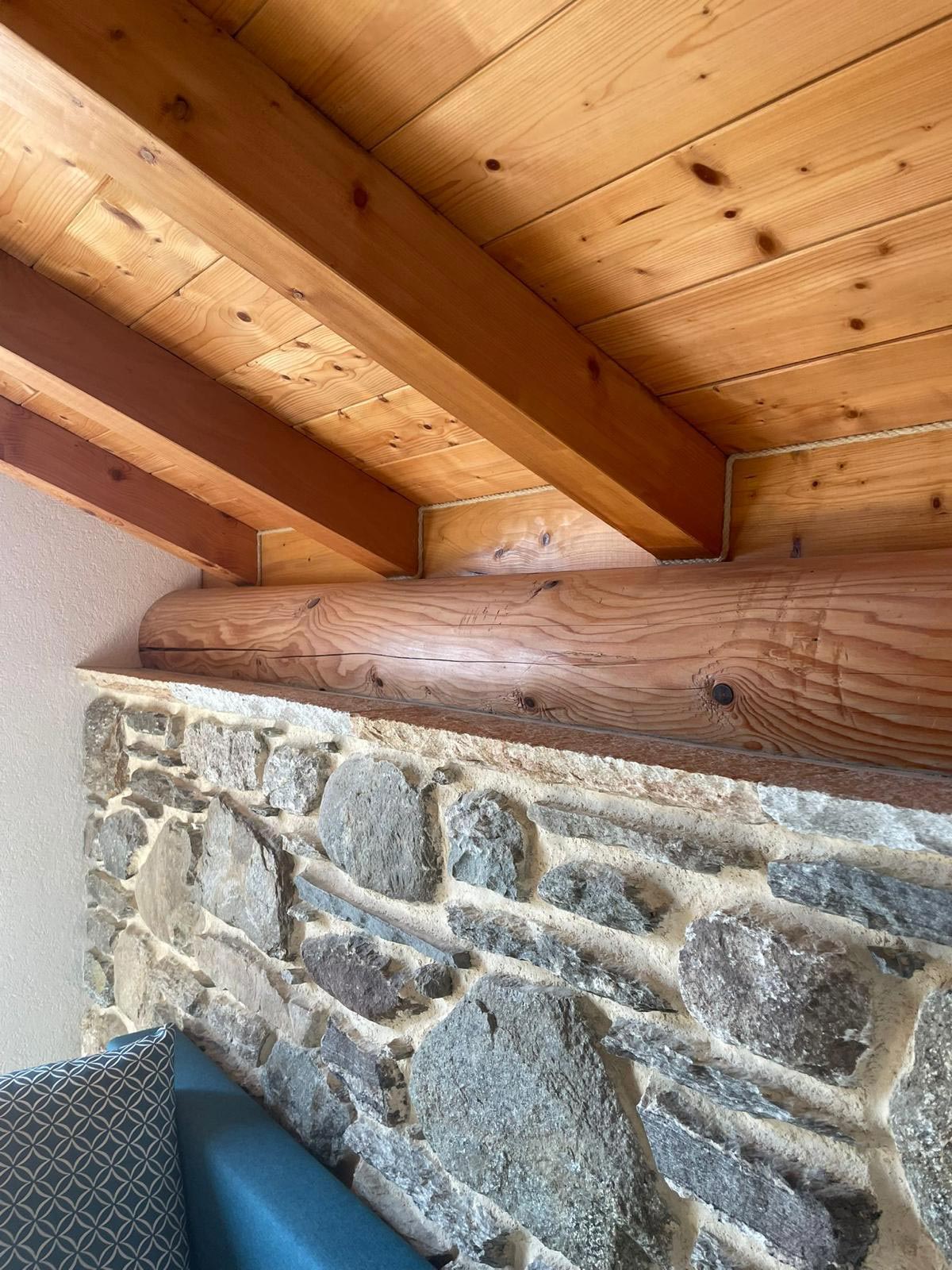 L’intervento ha visto la sostituzione dell’antica soletta in legno con una nuova soletta in beton, la posa di mattoni interni, la realizzazione di pareti in cartongesso con due mani di colla e rete, e finitura da 1 mm. Gli interni sono impreziositi dalla presenza del legno (tutto materiale ex novo) e dai muri di sasso, con finiture estremamente curate.